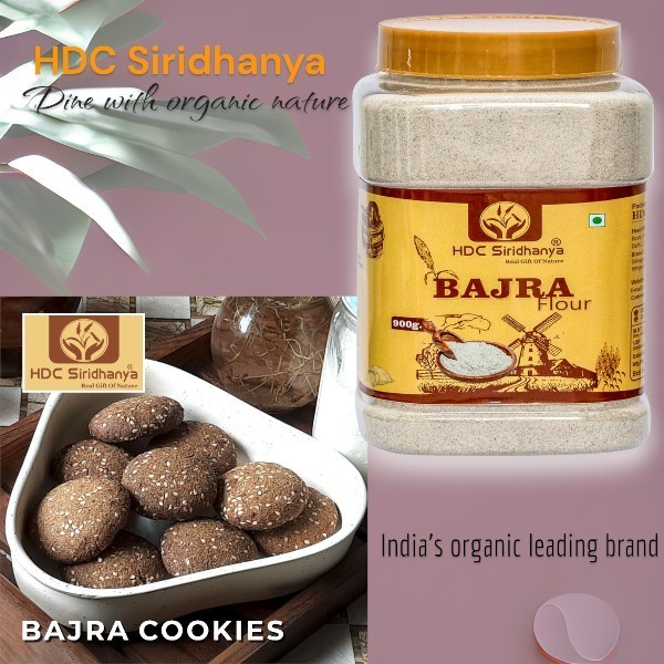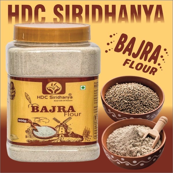 HDC Siridhanya natural organic roasted bajra flour/Atta| (Gwt.900gms.) chakki ground pearl millet flour | gluten free | 100% organically grown from Andhra Pradesh, Pack of (3)