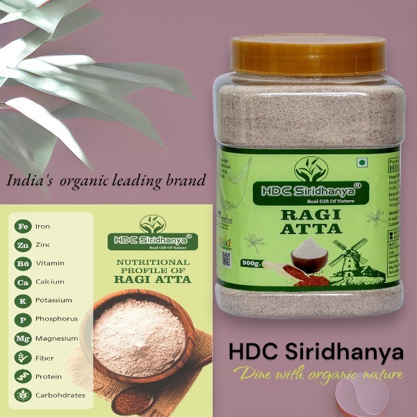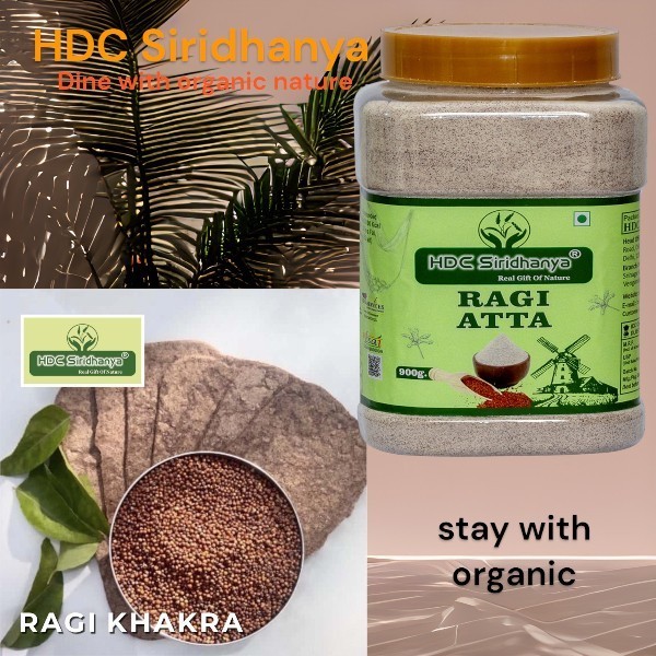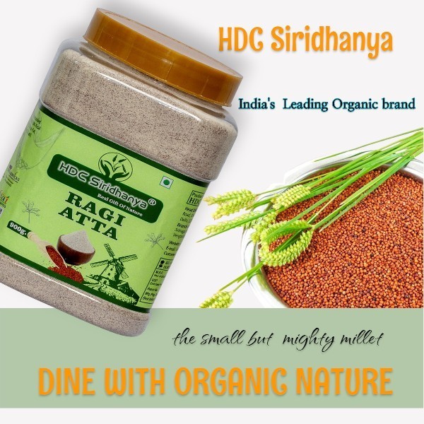 HDC Siridhanya Sprouted Organic Ragi Flour/Finger Millet/Nachni Flour - 900gms | Chemical Free & Pesticides Free | Natural & Gluten-free, pack of (3 Jar)