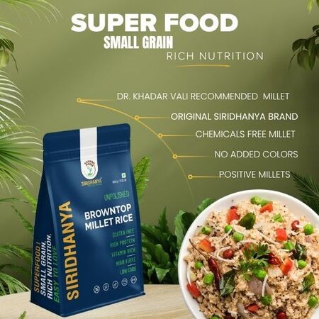 · Rice replacement: Siridhanya millets, the fiber and protein found in millets have been known to help curb cravings and satisfy hunger, making it a great replacement for white or brown rice in any meal. Add this nutty, nutritious rice substitute to your pantry for a new staple food that both kids and adults are sure to enjoy.