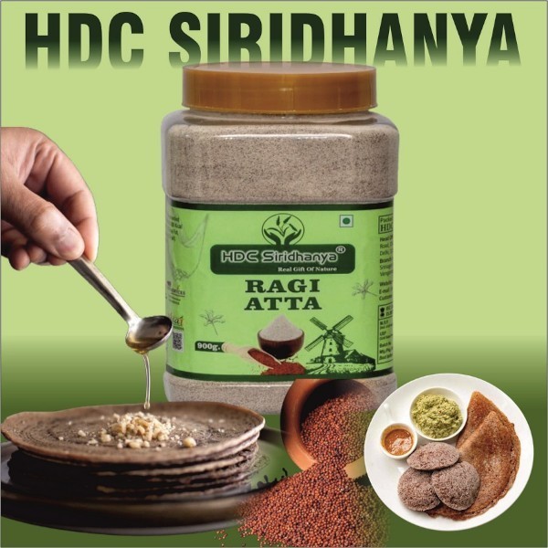 HDC Siridhanya Sprouted Organic Ragi Flour/Finger Millet/Nachni Flour - 900gms | Chemical Free & Pesticides Free | Natural & Gluten-free, pack of (3 Jar)