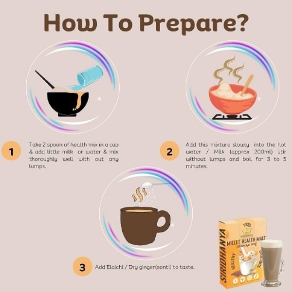 • Siridhanya millets malt prepared by 100% whole grain(millets) & Nuts.